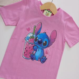 Remera Stitch Glitter Negra Rosa